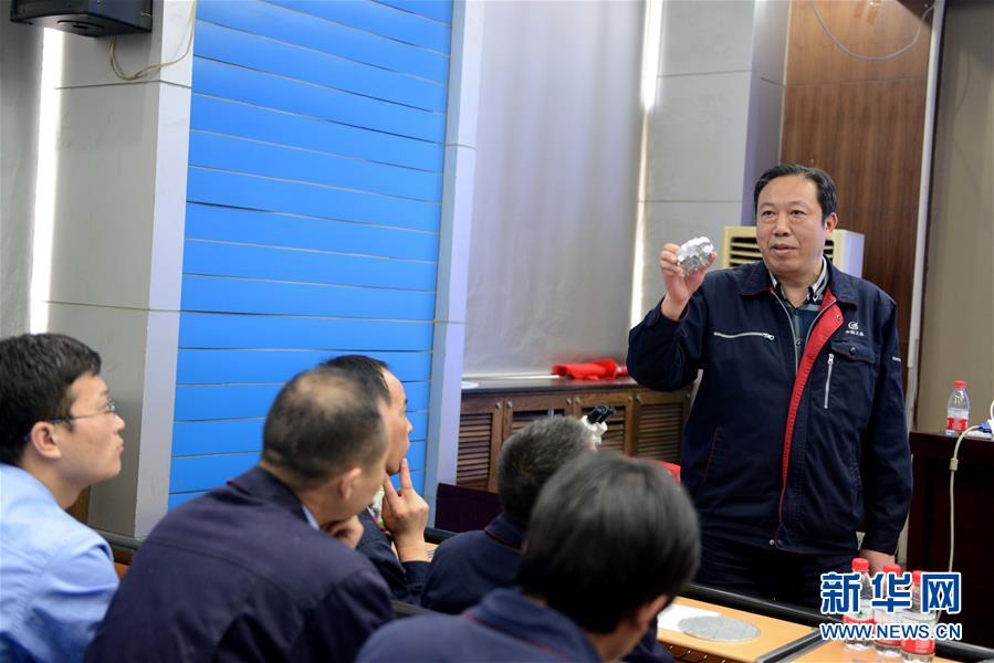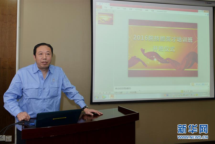 在位于河南洛陽的中航工業(yè)空空導(dǎo)彈研究院,魯宏勛為導(dǎo)彈院技能工人作專項(xiàng)培訓(xùn)(2016年4月19日攝)。新華社發(fā)
