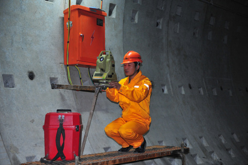 這雙“眼睛”就是測(cè)量人員。由于負(fù)責(zé)挖掘的盾構(gòu)機(jī)埋在土里,看不到方向,因此只有依靠測(cè)量人員提供的數(shù)據(jù),盾構(gòu)機(jī)才能準(zhǔn)確向前推進(jìn)。