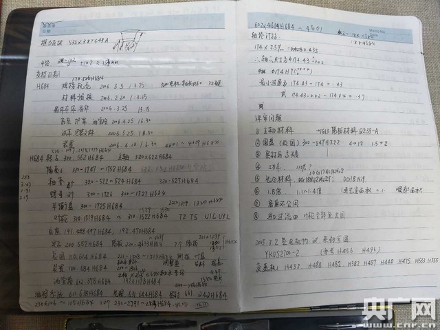 姜妍日常工作筆記,本子上密密麻麻地記錄著壓縮機的相關(guān)數(shù)據(jù)及理論知識,她說咱不如別人聰明但是必須“笨鳥先飛”。央廣網(wǎng)記者 王晶 攝