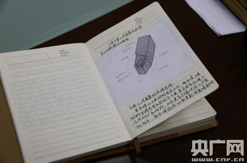 梁偉幾十萬字的手寫工作筆記,圖文并茂。央廣網記者 王晶攝