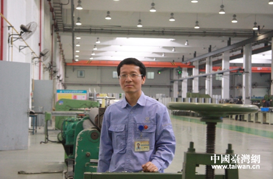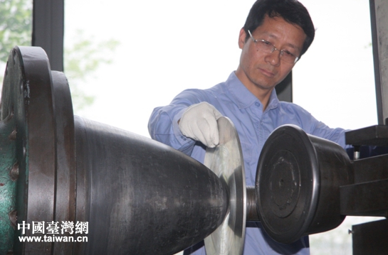 桑仁龍在演示操作機床。(中國臺灣網 王錫朋 攝)