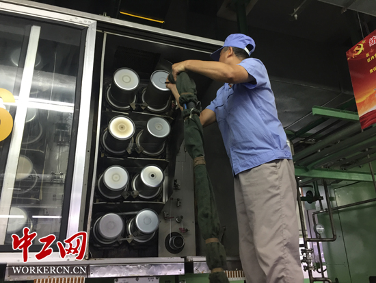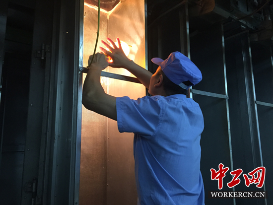 張國華查看噴絲板漏膠情況。中工網記者 劉英杰 攝