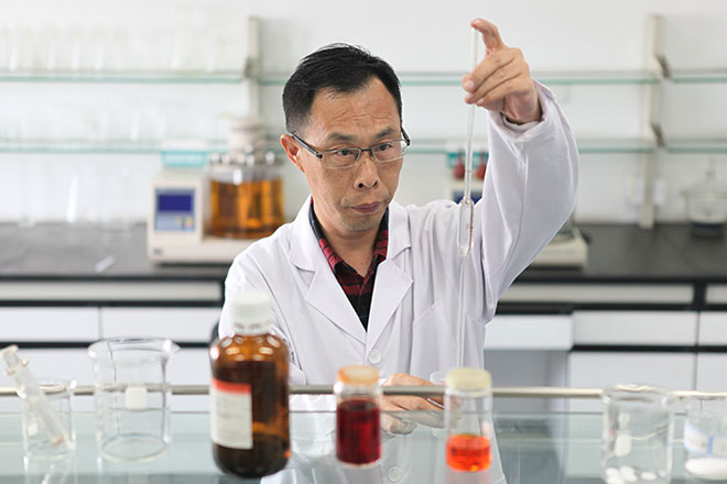 朱洪斌正在配置標準油
