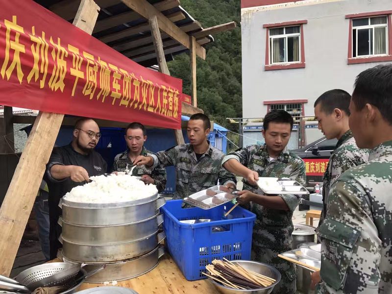 九寨溝地震后,劉波平迅速組織廚師奔赴抗震一線。劉波平供圖