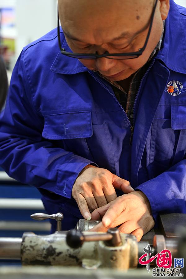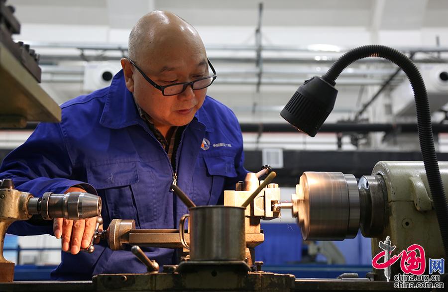 1985年1月王保森從部隊轉業進入航天科工二院工作。從一開始對車床技術的一無所知到現在的北京市首席技師和航天科工首席技師,這期間巨大的飛躍來源于其三十多年來的孜孜以求。中國網記者 楊楠攝影