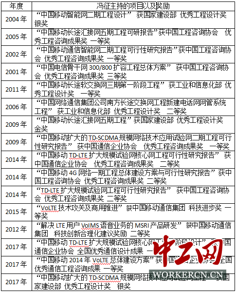 馮征主持的項目以及獲得的獎勵。中工網記者 朱晶晶整理