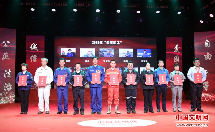 2018年“最美職工”代表合影。中國文明網(wǎng) 王楠 攝