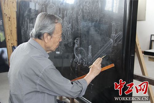 薛生金說,他一直住在廠子里,以場(chǎng)為家,每天十二點(diǎn)以后才睡覺,只為練習(xí)畫線條。除此之外,他還自行購買國畫書籍練習(xí)基本功。在他眼中,漆畫同樣需要國畫、工筆畫作為基礎(chǔ),而這些繪畫手法的學(xué)習(xí)積累也為薛金生日后在漆器制作手法上的創(chuàng)新提供了基礎(chǔ)。