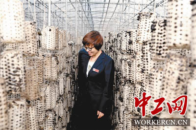 李二國在食用菌大棚查看黑木耳種植出耳情況。