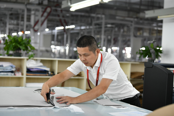 很多年輕人在工作崗位上還處于立足未穩的時候,郭軍偉已經是技術骨干。經過半年多勤學苦練,郭軍偉迎來了他進入紅豆集團后獨立完成襯衫制版的任務。“第一單完成的總體效果不錯,各方反映都還行。”憑借著以前做“土裁縫”時積累的經驗和專業制版培訓練就的技能,郭軍偉出色的完成了他版師職業生涯的“第一單”樣衣。
