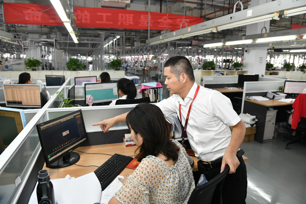 設計師吳偉和郭軍偉交流設計要領和工藝要求