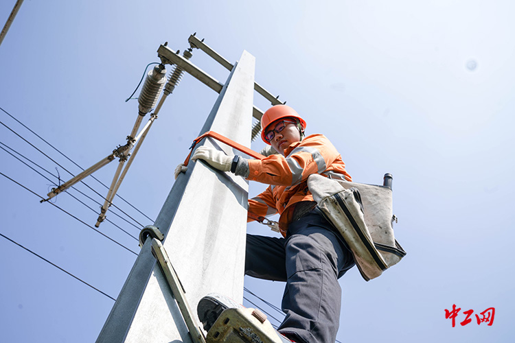 凌晨一點,寧杭高鐵的一處隔離開關位置,朱光耀正穿著腳扣,在接觸網支柱上攀爬。每登上一段距離,便將腰間的安全帶向上移動。1米、5米、10米……距離支柱頂端越近,風力也愈加強勁,不時有小樹枝和碎渣從頂端飄落。朱光耀揉了揉眼,手腳并用,繼續攀爬。