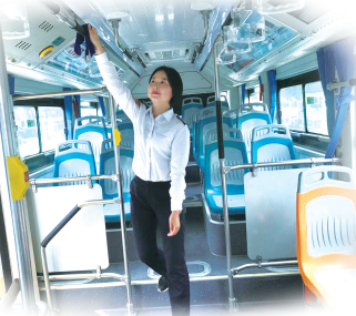 豐月菊在車(chē)廂內(nèi)打掃衛(wèi)生