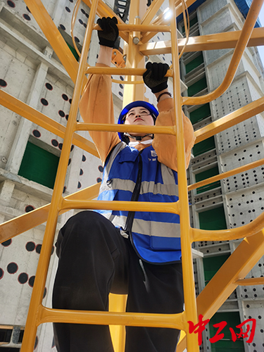 “以前覺得這個職業挺酷的,可實際并不是這么回事。”談及自己首次爬塔吊,李興艷說道。雖然她現在攀爬的速度很快,但當她第一次顫顫巍巍地爬上塔吊時,心臟急速跳動、手掌刺痛難忍,豌豆大小的汗珠伴隨著急促的呼吸打濕了外套。那時40米高的塔吊,她整整花費了半個小時才爬完。晚上休息時無力酸痛的雙臂和雙腿更是讓她坐臥難安。挑戰似乎并沒有因為她是女生溫柔以待,反而有些不近人情。