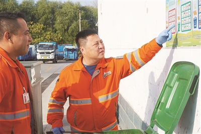 李彤所在班組負(fù)責(zé)著海淀區(qū)北半部4個(gè)鄉(xiāng)鎮(zhèn)和5個(gè)街道的廚余垃圾清運(yùn)工作,每天要清運(yùn)100噸左右的廚余垃圾。2009年,海淀區(qū)便成為了北京市垃圾分類的試點(diǎn),廚余垃圾要單獨(dú)運(yùn)輸。“做這份工作,要保證運(yùn)走的100%都是廚余垃圾,所以要熟知分類標(biāo)準(zhǔn)。對(duì)分類不好的地區(qū)和單位,我們還有指導(dǎo)、提醒的義務(wù)。”李彤說。