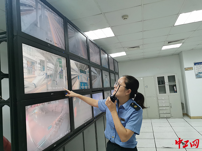 綜控員“啥都要管”。站臺乘降、設(shè)備維修上報、列車上水、視頻監(jiān)控、信息調(diào)令接發(fā)等,都需要綜控員去監(jiān)管,同時協(xié)調(diào)著火車站行車、客運、售票、房建、上水等10幾個車間部門?!岸菣z票口,D6521次停止檢票?!薄?號檢票閘機故障,已經(jīng)通知維保人員前去維修。”“有哪位旅客丟失了行李,請您盡快到一樓服務(wù)臺認領(lǐng)。”……車站特有的“迎春花服務(wù)臺”、車站工作人員、志愿者全部由綜控員王焓爽指揮。站內(nèi)各處近120多個視頻監(jiān)控、60塊LED顯示屏、26臺檢票閘機都由綜控員調(diào)控,王焓爽目光隨時在每個屏幕上跳動,實時監(jiān)控著車站每個場所,確保車站運輸安全的同時,及時發(fā)現(xiàn)需要幫助的旅客,并及時組織服務(wù)臺和工作人員趕到現(xiàn)場。