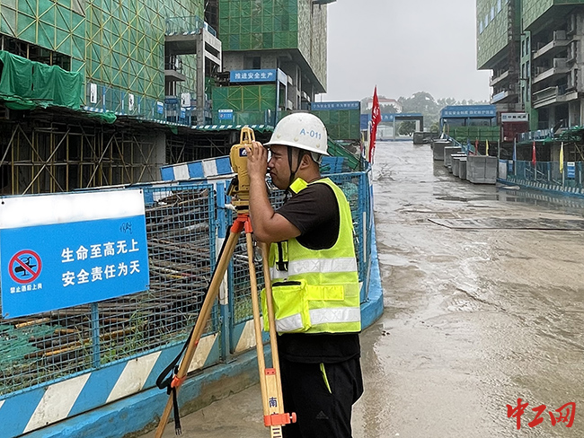 “耐心!細(xì)心!用心!才能保證測(cè)量精度萬(wàn)無(wú)一失。”中建二局二公司信陽(yáng)開(kāi)元湖畔云廬項(xiàng)目測(cè)量員王鵬一邊聚精會(huì)神地盯著全站儀顯示屏,一邊指揮著水準(zhǔn)尺扶尺人員不停調(diào)整角度以確保獲得準(zhǔn)確數(shù)值。