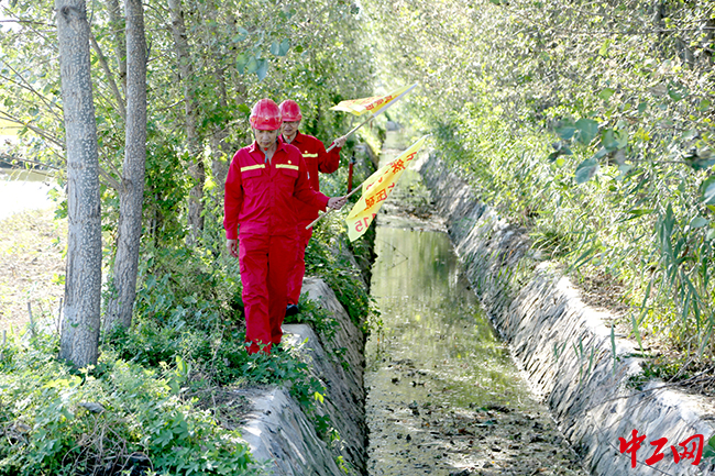 徒步檢測踏線是日常,就在前一天,單位的生產調度剛剛發布了新一輪的暴雨天氣預警,和張培新一起去巡線的還有同事王成全,他們在班前會后迅速換好工作服,又往工具包里裝了雨衣、純凈水和幾個蘋果,鉆進了等待在隊部門口的皮卡車里。他們要去嘉唐管線與遷曹鐵路交叉段巡視管線情況的,兩人當天要完成21公里的管道徒步檢測巡線工作,以確保嘉唐管線下游用戶能正常用氣。