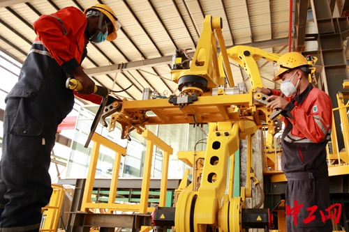 技術(shù)人員正在進(jìn)行陰極銅自動(dòng)剝片機(jī)組調(diào)試