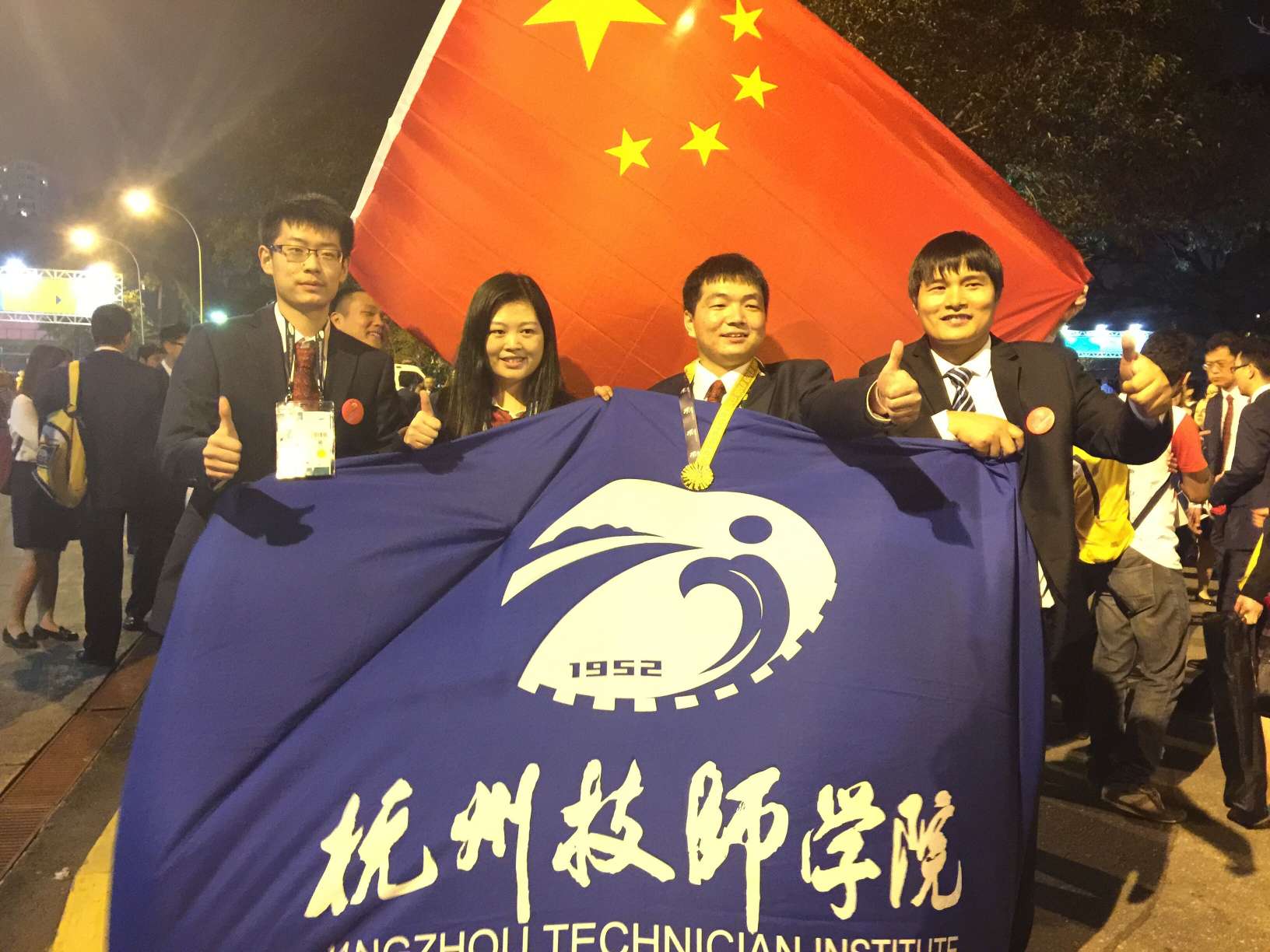 圖為楊金龍在第43屆世賽獲得世界冠軍后合影。受訪者供圖
