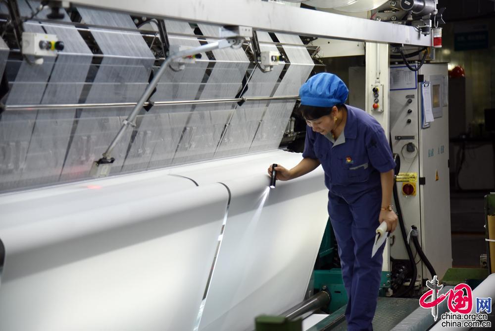 質(zhì)量和效率,是生產(chǎn)線(xiàn)上的兩大要素,每逢工期緊張,趙巧娟甚至吃飯都在經(jīng)編機(jī)前,就是為了贏得那么短短幾分鐘時(shí)間來(lái)加快進(jìn)度。在她的帶動(dòng)下,公司編織的這匹“布”,材質(zhì)越來(lái)越好,產(chǎn)量越來(lái)越高,工藝越來(lái)越深,而登上的舞臺(tái),也越來(lái)越大。