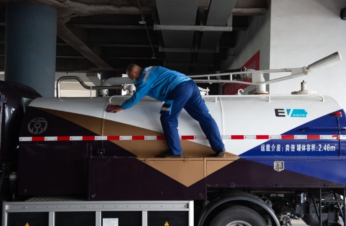 開著現代化的電動抽糞車