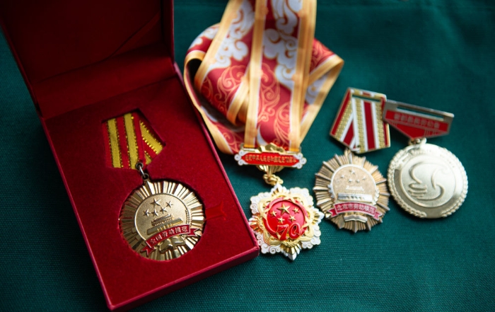 這是孫志寶獲得的部分榮譽獎章(4月25日攝)。