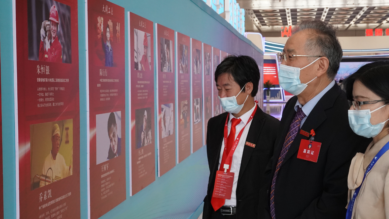 論壇期間舉辦了湖湘勞模工匠創新成果展,湖南省14個市州、省直工會、大型企業展示自身勞模工匠創新成果。圖為湖湘勞模工匠創新成果展現場。