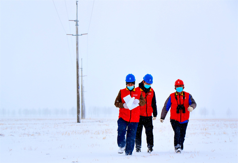 圖為阿曼吐爾·依沙木丁帶領隊伍開展寒潮天氣供電線路特巡(攝影/劉顯剛)