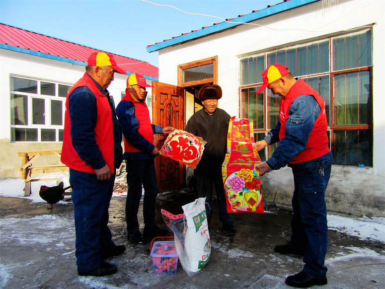 圖為阿曼吐爾·依沙木丁為鄉孤寡老人春節送年貨(攝影/劉顯剛)