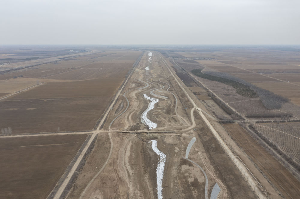 這是雄安唐河河谷郊野公園項目現場(2月15日攝,無人機照片)。新華社記者 才揚 攝