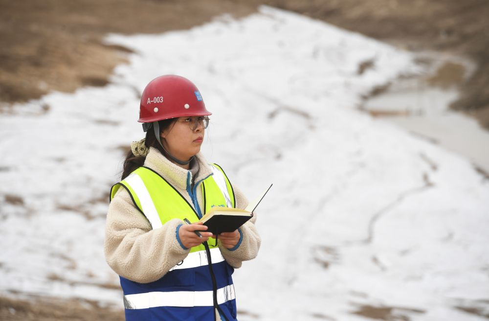 楊鑫博在雄安唐河河谷郊野公園項目現場工作(2月15日攝)。新華社記者 朱旭東 攝