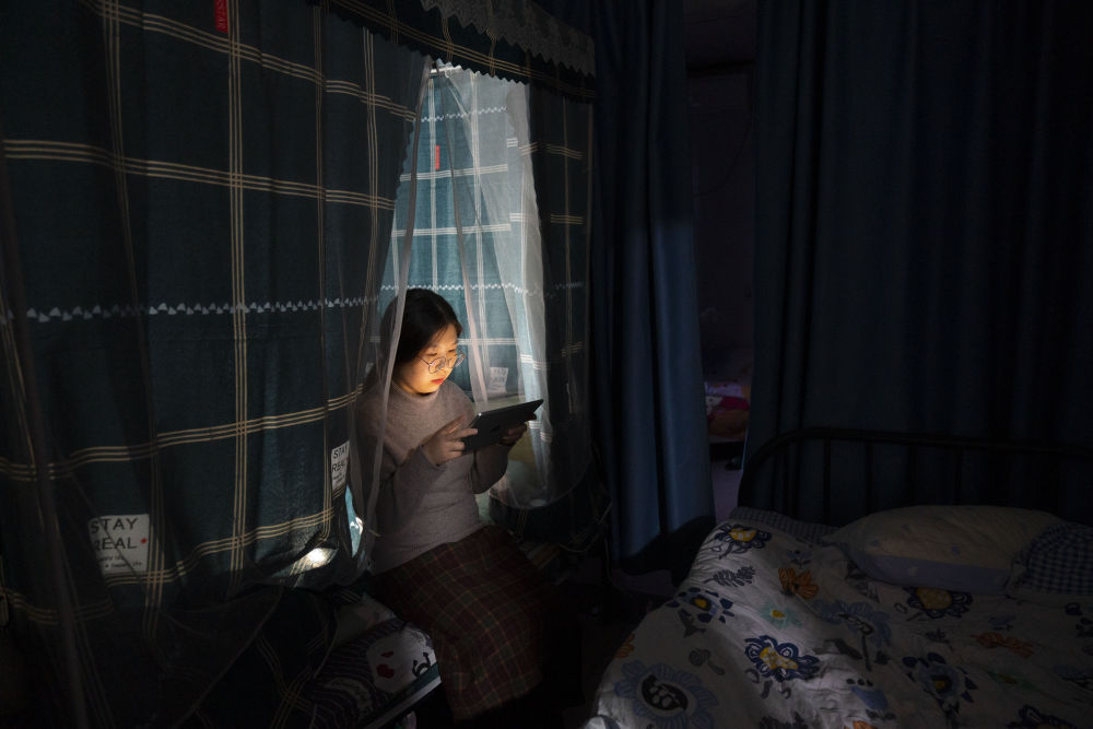楊鑫博在項目部宿舍玩網絡游戲(2月15日攝)。新華社記者 才揚 攝
