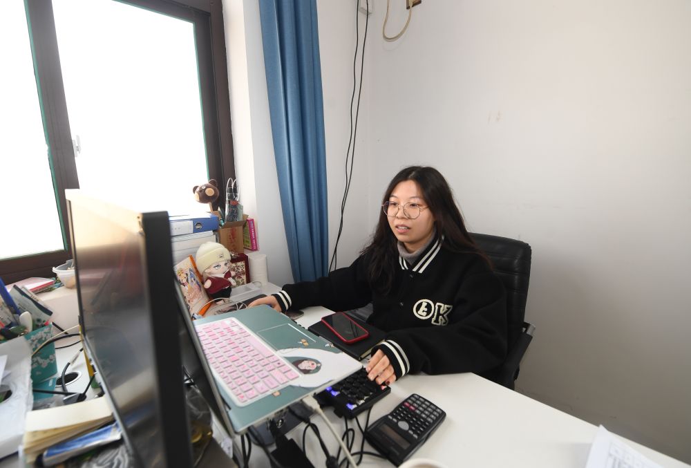 楊鑫博在項目部辦公室工作(2月15日攝)。新華社記者 朱旭東 攝