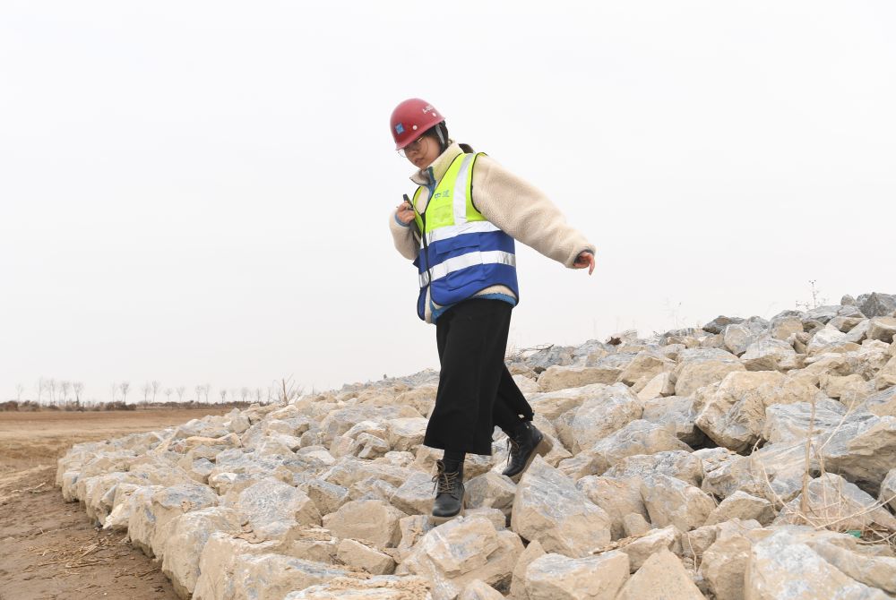 楊鑫博在雄安唐河河谷郊野公園項目現場(2月15日攝)。新華社記者 朱旭東 攝