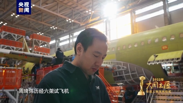 陌生的領域,復雜的工序,激發起了周琦煒不服輸的勁頭。此后的無數個夜晚,周琦煒獨自留在車間,加班熟悉飛機的每一個部段,每一條線路。16年的時間,從ARJ21到C919,從電氣裝配工到工段長,大飛機已經成了周琦煒生活的一部分。