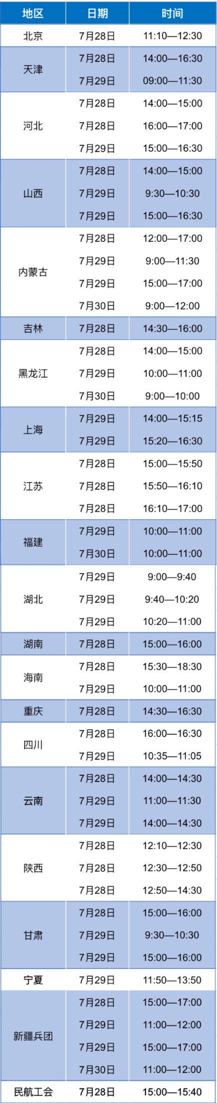 各地直播排期表