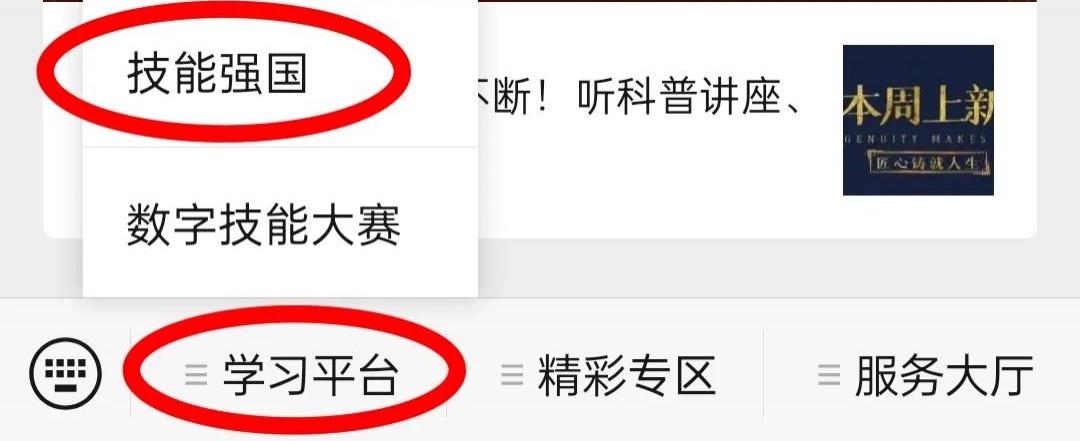 關(guān)注公眾號后,點(diǎn)擊“學(xué)習(xí)平臺”-“技能強(qiáng)國”。