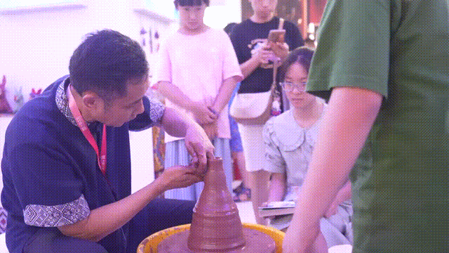 坭興陶行業(yè)的工匠人才在現(xiàn)場展示精彩絕倫的技術技能絕活