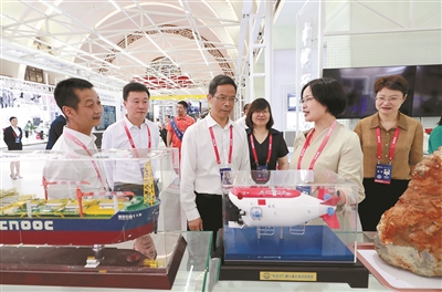 省總工會領(lǐng)導(dǎo)呂志良、胡柯蒞臨巾幗工匠交流區(qū),詳細(xì)了解“蛟龍?zhí)枴陛d人深潛器等高精尖科技。 浙江工人日報記者鄒偉鋒 攝