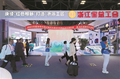 此次大會上,浙江省總工會展區(qū)以“庚續(xù)‘紅色根脈’,打造‘浙派工匠’”為主題,展現(xiàn)以“浙派工匠”為代表的高素質(zhì)職工隊伍建設(shè)的卓越成果,展示部分優(yōu)秀勞模工匠的典型事跡以及創(chuàng)新成果。