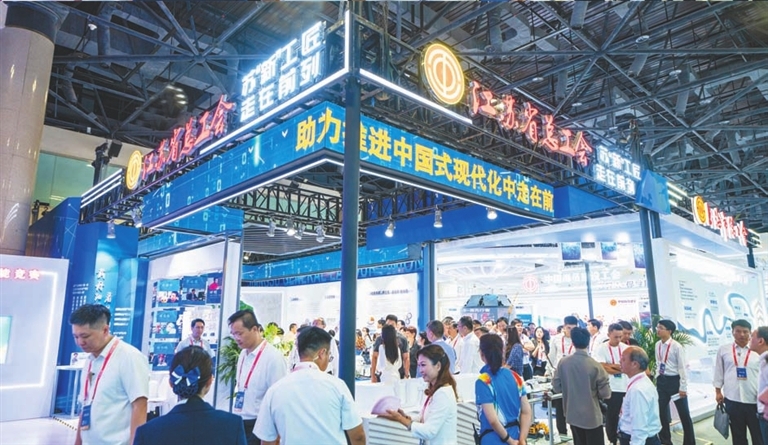 第二屆大國工匠創(chuàng)新交流大會(huì)上,江蘇展區(qū)觀眾云集。張旭 邵勁松 攝