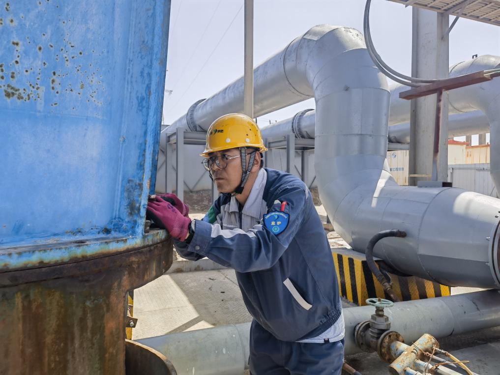 郭延濤在檢查3號導鹵泵站混流泵運行狀況(溫雅 攝)