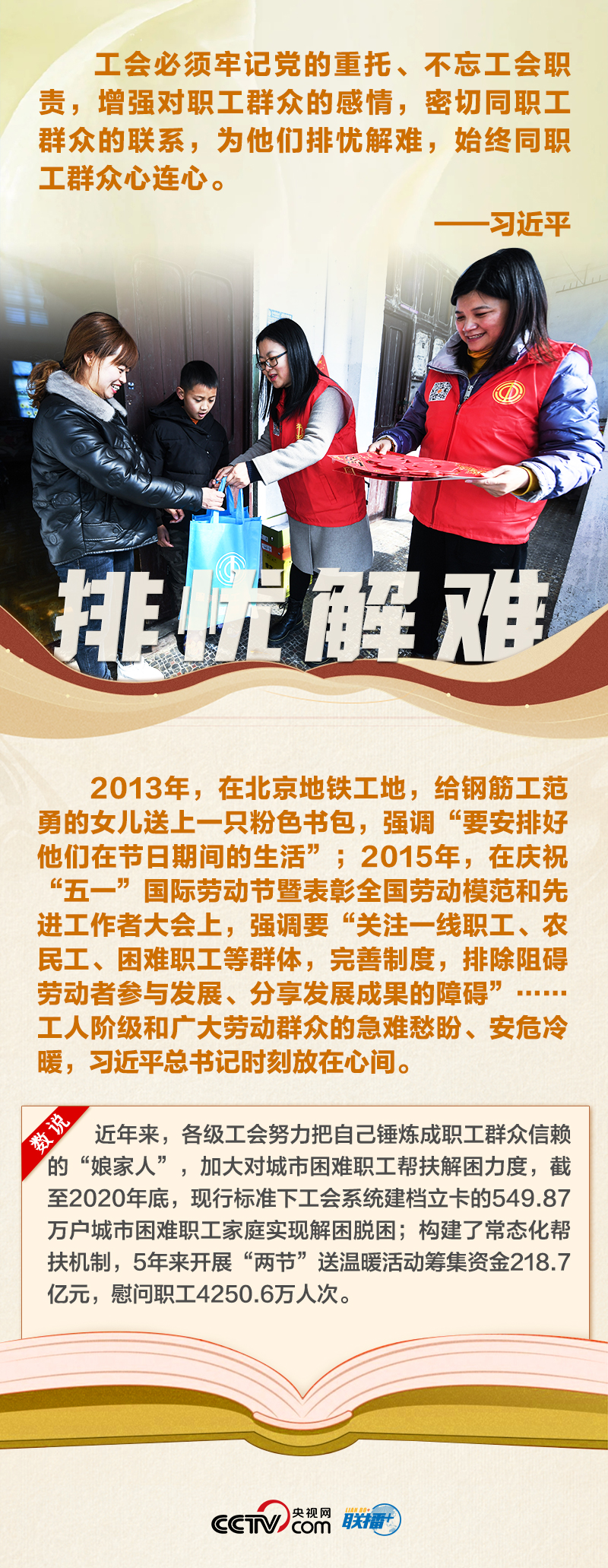 工人階級是我們黨最堅實最可靠的階級基礎,工運事業是黨的事業的重要組成部分,工會工作是黨治國理政的一項經常性、基礎性工作。黨的十八大以來,習近平總書記多次出席勞動者活動,同普通工人談心,給勞模回信,為廣大勞動群眾煥發工人階級主人翁精神注入強勁動力。