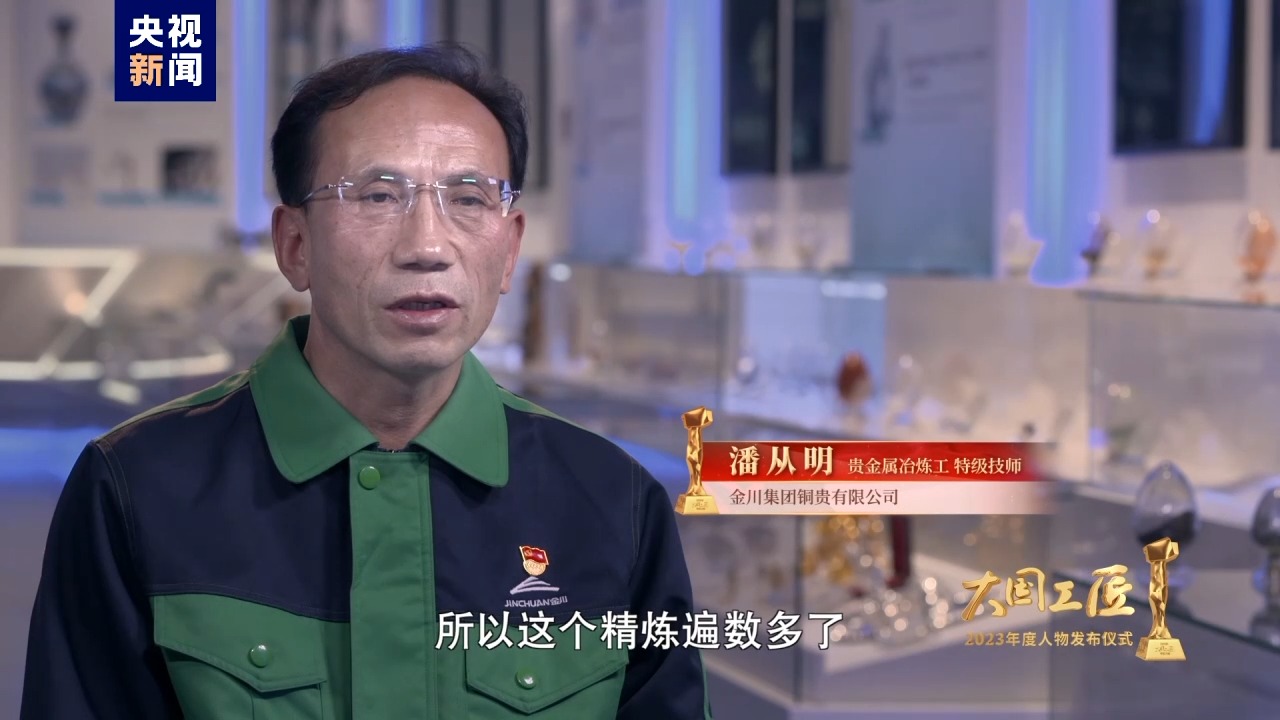 潘從明:我們貴金屬每多精煉一遍,它都會有微量損失,所以這個精煉遍數多了,這個損失量就大了,所以把我們國家有限的資源,必須充分吃干榨凈。