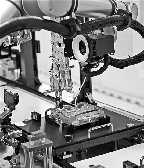 在江蘇無錫車聯天下信息技術有限公司,機器人在生產智能網聯汽車座艙域控制器。新華社記者 季春鵬 攝