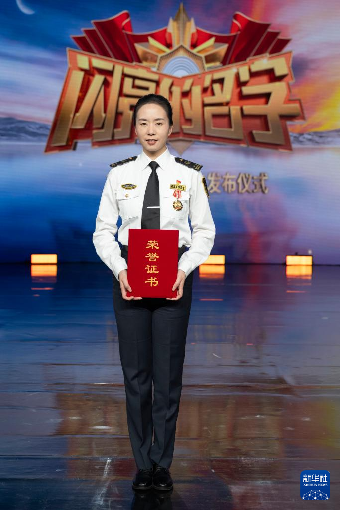 中華人民共和國(guó)浦東海事局海區(qū)海巡執(zhí)法大隊(duì)副大隊(duì)長(zhǎng)、“海巡01”輪船長(zhǎng)詹春珮在“最美職工”發(fā)布儀式上(4月24日攝)。新華社記者 才揚(yáng) 攝