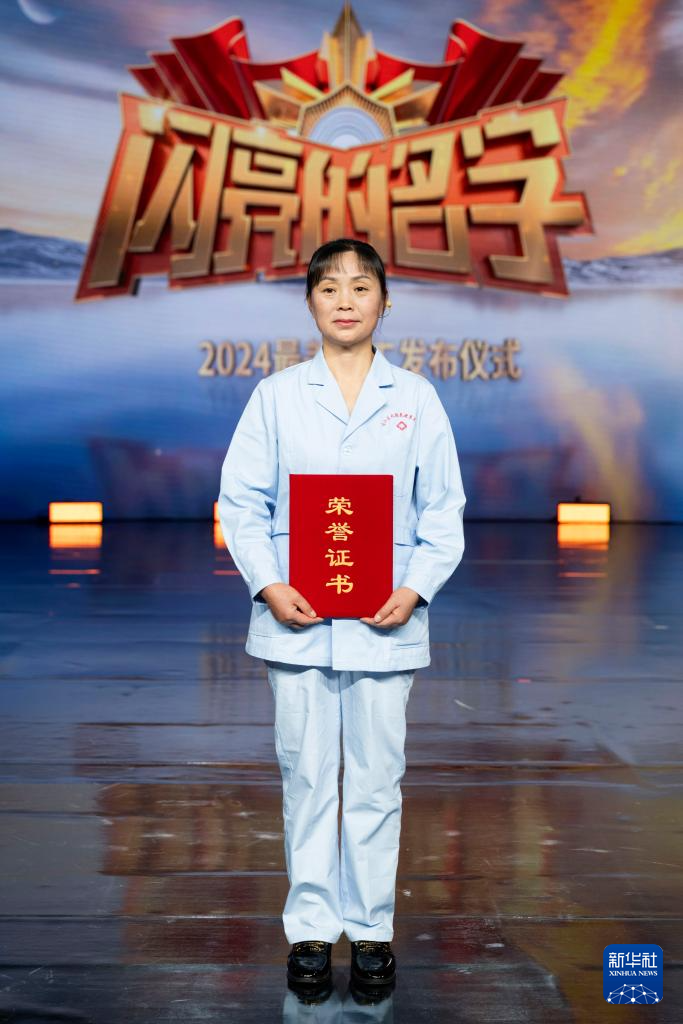 四川省巴中市通江縣大椿養(yǎng)老康復(fù)中心養(yǎng)老護(hù)理員蒲玉在“最美職工”發(fā)布儀式上(4月24日攝)。新華社記者 才揚(yáng) 攝