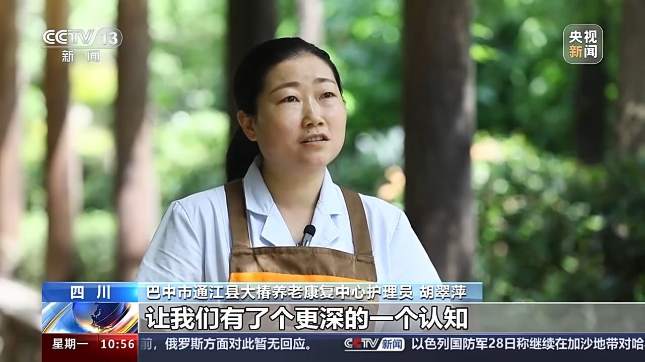四川省巴中市通江縣大椿養(yǎng)老康復中心護理員 胡翠萍:通過蒲主任對我們的培訓,讓我們有了個更深的一個認知,像照顧老人的日常生活當中,并不只是照顧他的飲食起居,我們還要關注他的身心健康變化,像在老人面前我們會扮演他很多角色,像他的子女啊,親人,這樣子他會更融入我們。