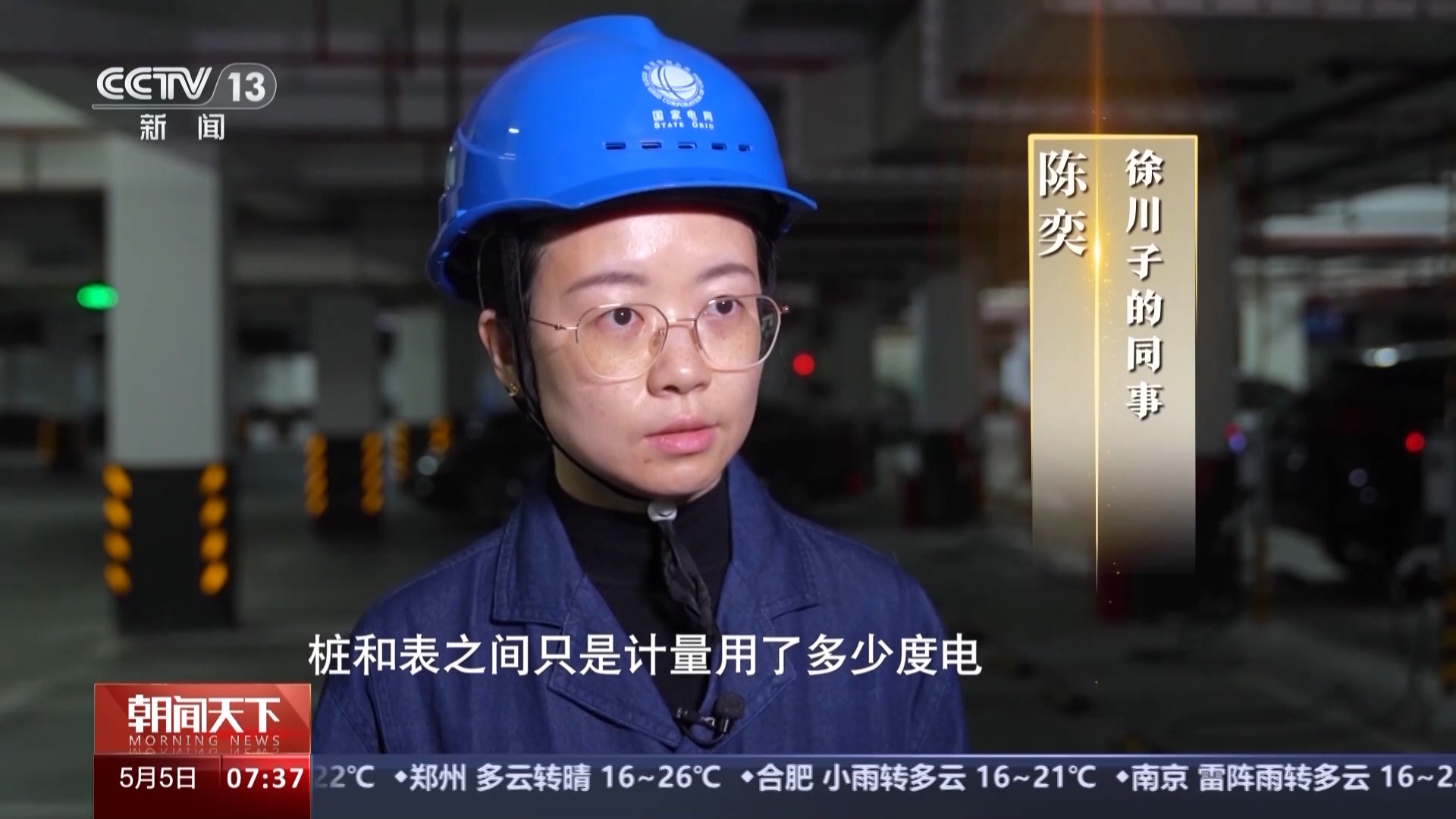 徐川子的同事 陳奕:樁和表之間只是計量它用了多少度電,要把這條通信鏈路用起來,其實是需要做很多改進的。